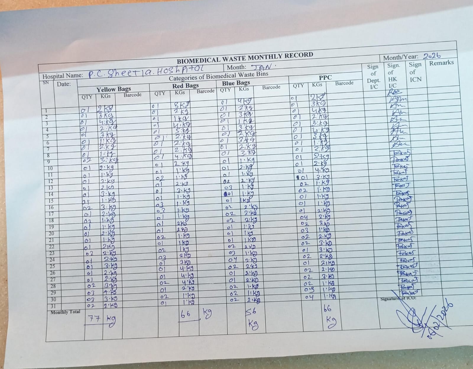 Biomedical Waste (BMW) Report Monthly